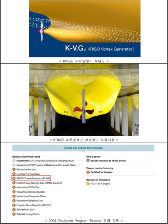 KRISO는 선박의 수중방사소음을 저감하고자 개발한 ‘KRISO 와류발생기(K-VG)'가 캐나다 밴쿠버항의 에코액션 프로그램(EcoAction Program)에 브론즈(Bronze) 등급으로 등록됐다고 밝혔다.
