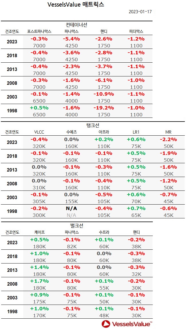 [표] 주간 중고선 가격동향