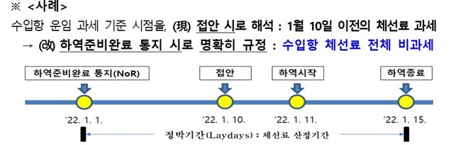 관세청은 국내 입항 후 발생하는 체선료 등이 수입물품 과세가격에 포함되지 않도록 관련 고시를 개정했다. 개정안에서는 운송비용의 과세기준점인 수입항 ‘하역준비 완료’의 의미를 ‘하역준비완료 통지’ 시점으로 명확하게 규정했다.