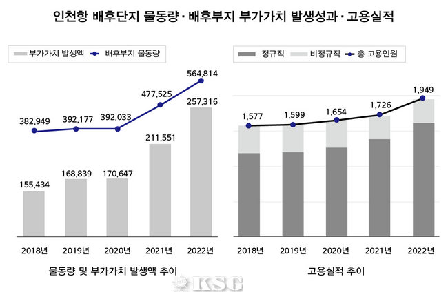 지난해 인천항 항만배후단지 물동량이 역대 최대치를 달성하며 그에 따른 고용인원과 부가가치 창출효과도 대폭 증가하게 됐다.