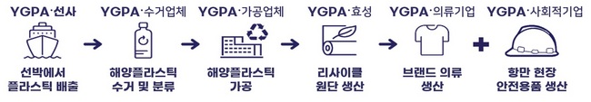 YGPA는 지난 2년간 지속가능한 프로세스 구축을 위해 국제 친환경인증기관인 컨트롤 유니온사로부터 국내 최초이자, 세계에서 6번째로 OBP(Ocean Bound Plastic) 수거 인증을 획득해 해양 플라스틱의 수거 추적성을 확보했다.
