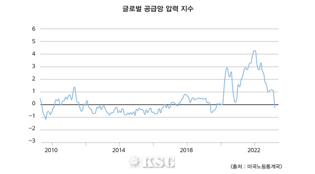 상승세는 길지 않았다. 우크라이나 사태 장기화 등에 따라 유럽 지역에서 공급망 압력이 계속될 거란 뉴욕연은 측의 예상과는 달리 작년 5월부터 다시 빠른 속도로 지수가 꺾이기 시작했다. 5월과 6월 각각 2.59 2.31를 기록하며 평균 2p대를 유지했다. 이후 7월엔 1.84까지 떨어지면서 공급망 압력이 안정되는 추세를 보였다. 이후 4분기엔 평균 1p대를 나타내며 소폭 반등했으나, 올해 들어 다시 1p 미만으로 떨어지며 완연한 회복세를 띠었다.