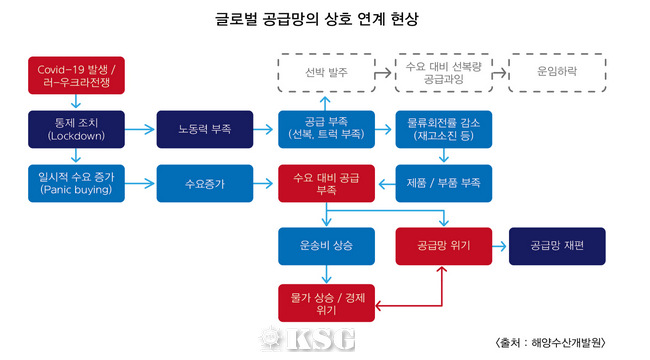 이 지수는 재작년 12월 최고점인 4.31에 도달한 후 지난해 1분기까지 점차 완화되는 추세를 보였다. 하지만 작년 1분기 평균 3p 미만이었던 지수는 4월 들어서 코로나19 재확산 추세에 따른 중국 도시 봉쇄 조치와 우크라이나 사태 등 연이은 악재에 3.42까지 다시 일시 상승했다.