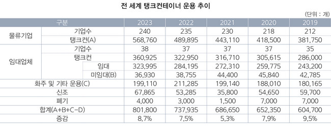 탱크컨테이너박스가 높은 성장 곡선을 이어갔다. 특히 신조 물량은 2년 연속 급증세를 보였다.