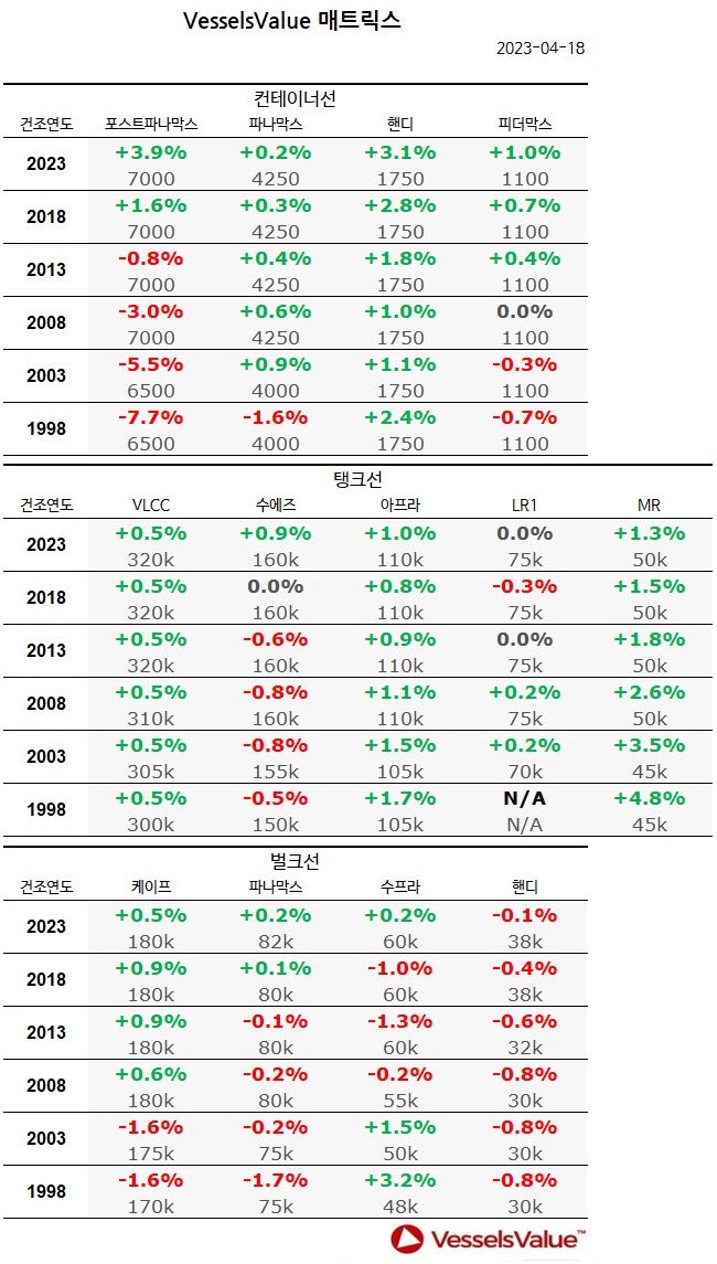[표] 주간 중고선 가격동향