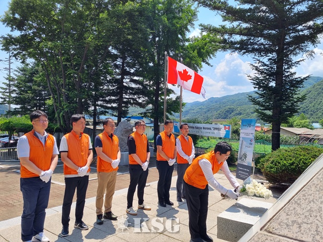 한화오션은 “한화오션 직원들이 24일 경기도 가평군 북면에 위치한 미국, 캐나다, 호주, 뉴질랜드의 전투기념비 주변을 정화 활동하고 추모하는 시간을 가졌다”고 밝혔다.