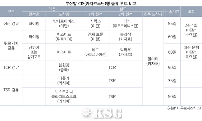 ‘글로벌 물류 대란’에 대비해 중앙아시아행 대안 물류 루트를 선제적으로 개발해야 한다는 주장이 제기됐다.
