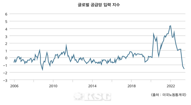 미국 뉴욕연방준비은행이 집계한 올해 2분기 글로벌공급망압력지수(GSCPI)는 역대 최저치인 -1.37를 기록했다. 코로나19 팬데믹 발발 이후 지난 2020년부터 2022년까지 3년간 2분기 평균 GSCPI는 2.8포인트(p)로 집계돼, 올해와는 확연히 상반된 양상을 띠었다. 팬데믹 이전 시기인 2019년 2분기(1.11)에 견줘도 올해 공급망 흐름은 그 어느 때보다 순조로웠다.