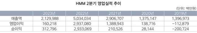 HMM의 올해 2분기 영업이익이 전년 대비 95% 급감했지만, 코로나 이전인 2019년과 비교해선 개선된 것으로 나타났다.