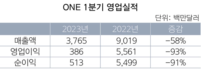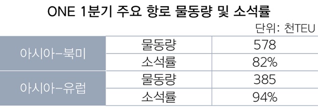 ONE은 영업보고서에서 2023회계연도 1분기(4~6월)에 영업이익 3억8600만달러(약 5000억원), 순이익 5억1300만달러(약 6700억원)를 각각 거뒀다고 밝혔다.