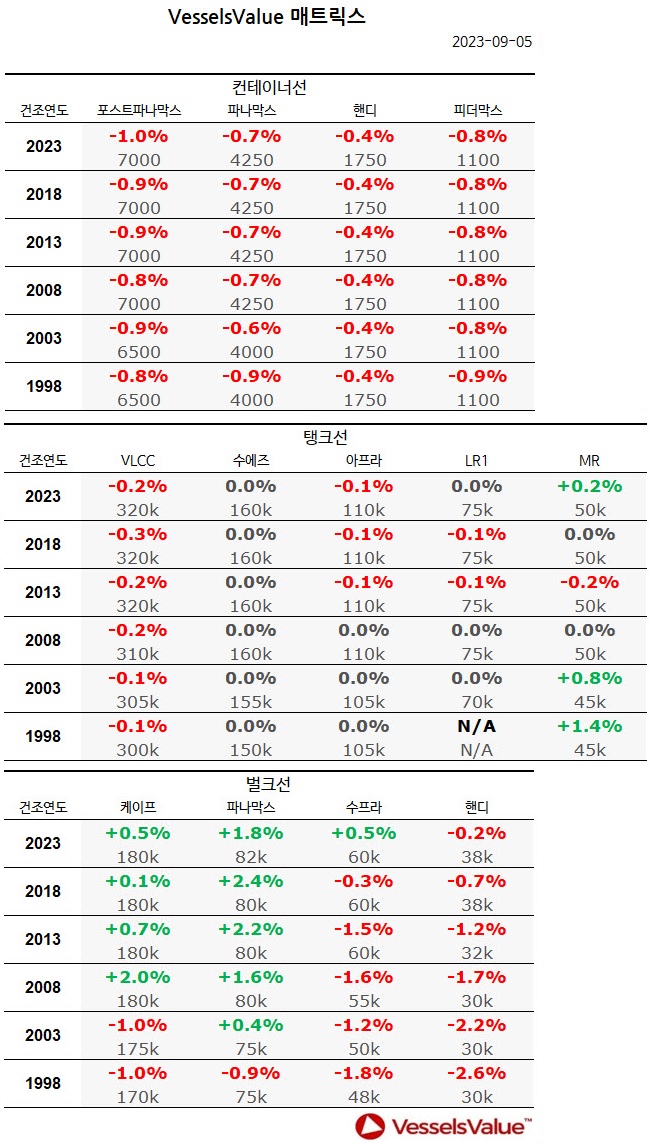 [표] 주간 중고선 가격동향