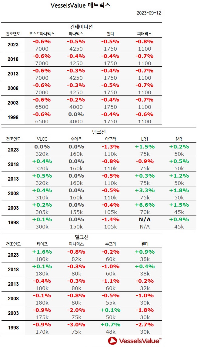 [표] 주간 중고선 가격동향