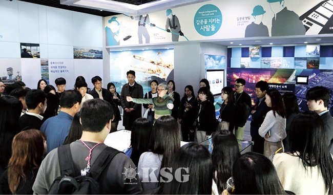 홍보관에서 IPA 하길형 해설사는 “인천항 갑문은 지형적인 제약에도 대형선이 시간 구애를 받지 않고 접안하는 데 큰 도움을 주고 있다”고 말했다.