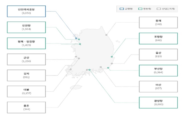 자유무역지역은 산업단지형과 공항·항만형으로 구분할 수 있으며, 산업단지형으로는 마산, 익산, 군산, 대불 등 7개 지역, 공항·항만형으로는 인천공항과 부산항, 포항항, 평택·당진항, 광양항 등 6개 지역이 지정돼 있다. 그 밖에 자유무역지역으로 물류단지 및 물류터미널도 지정 가능하다.
