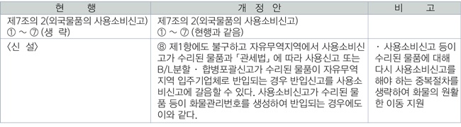 1. 자유무역지역에서 사용소비신고를 완료한 물품이 다른 보세구역으로 반출 후 재반입되는 경우 다시 사용소비신고를 해야하는 중복 절차 생략