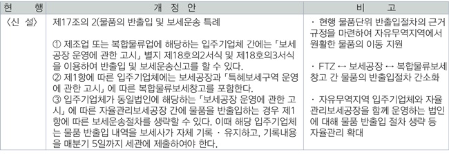 2. 제조업 또는 복합물류업종의 사업을 하는 입주기업체에 대해 간이한 방식의 물품 반출입 및 보세운송절차 적용