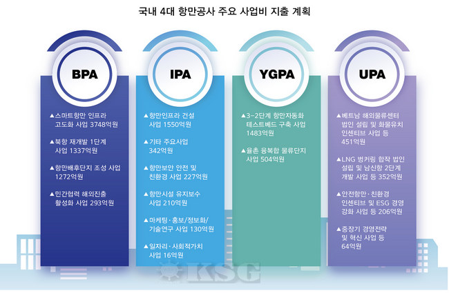 주요 사업 부문별 지출 예산을 보면 ▲스마트항만 인프라 고도화 3748억원 ▲북항 재개발 1단계 사업 1337억원 ▲항만배후단지 조성 1272억원 ▲민간협력 해외진출 활성화 293억원 등이다. 또 BPA는 ESG 경영 전략의 일환으로 공공성 강화 사업들도 적극 추진한다. ▲하역장 재해예방시설 지원사업 ▲상생협력 사업 확대 ▲친환경 에너지 자립항만 구현 등 다양한 사업을 추진해 공기업으로서의 사회적 책임을 이행할 방침이다.