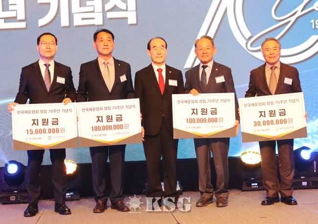 아울러 한국해양산업총연합회 한국해양소년단연맹 한국선장포럼 한국해양재단엔 총 2억4500만원의 지원금을 전달하고 앞으로도 회원사와 함께 해운 성장으로 거둔 이익을 사회에 환원하는 데 앞장설 것을 약속했다.