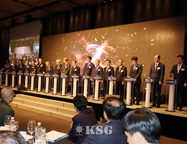 | ▲해운협회는 17일 더플라자호텔에서 열린 창립 70주년 기념식에서 ‘해운산업, 2050년 무역대국 견인’이란 내용의 장기 비전을 선포했다. |
