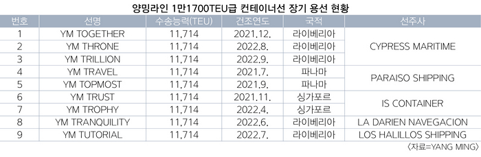 선명이나 선형 등의 구체적인 내용은 공개되지 않았지만 선주사에 미뤄 매입한 선박은 양밍해운이 2021년께 이마바리조선소에서 인도받은 1만1700TEU급 컨테이너선 시리즈로 파악된다.