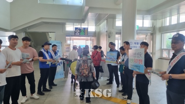 캠페인은 통영운항관리센터와 마산지방해양수산청이 합동으로 이뤄졌으며, 이용객이 증가하는 여름 휴가철을 대비해 현장에서 여객이 반드시 지켜야할 안전수칙 4가지를 집중 홍보했다.