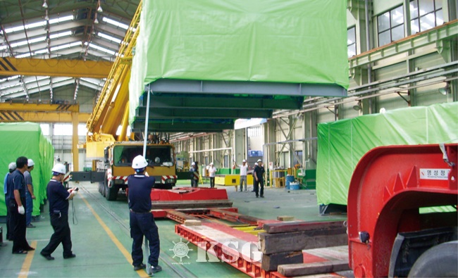| ▲미국 휴스턴행 중량화물을 평택항 인근 창고에서 출고하는 모습 |
