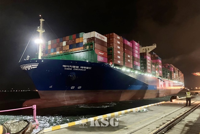 17일 인천 신항 선광컨테이너터미널(SNCT)에 입항한 1만3800TEU급 선박 <에이치엠엠에메랄드>(HMM EMERALD·