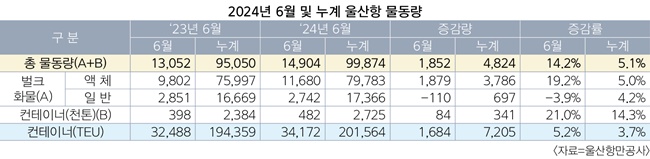 컨테이너 화물은 상반기 기준 전년 동기 19만4359TEU 대비 3.7% 증가한 20만1564TEU를 기록, 2021년 이후 3년 만에 20만TEU 수준을 회복했다.