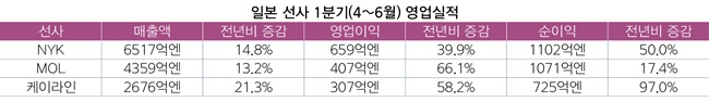 일본 3대 해운사, 외형·내실 동반성장