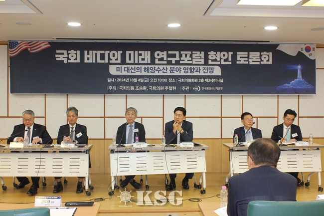 지난 4일 서울 여의도 국회의원회관에서 열린 ‘국회 바다와 미래 연구포럼 현안 토론회’에서 김민수 한국해양수산개발원(KMI) 본부장은 미국 대선 결과에 따라 해운시장 판도가 달라질 것이라며 해양수산업에 미칠 영향과 대응 방안을 발표했다.