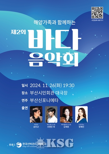 한국선박관리산업협회는 오는 11월26일 19시30분 부산시민회관 대극장에서 ‘해양가족과 함께하는 제2회 바다음악회’를 개최한다.