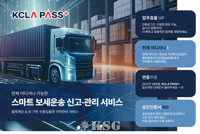 ‘KCLA Pass+’는 과학기술정보통신부와 부산시가 추진한 ‘2024년 지역특화산업 융합 블록체인 공동프로젝트’를 통해 개발됐다. 검증된 블록체인 기반의 보세운송 프로세스 전반을 효율적으로 운영·관리 하는 서비스다.