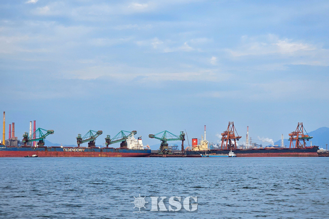 광양항 등표를 끼고 돌면 부두 너머로 광양제철소가 보인다. 제철소의 면적은 약 650만평으로, 단일 제철소 기준으로 세계 최대 규모다. 제철소를 배후로 원료를 수입하는 원료부두와 이곳에서 만든 제품을 수출하는 제품부두가 들어서 있다. 각 부두에 설치돼 있는 설비 색깔이 달라 궁금증을 자아냈는데, 원료부두는 초록색 하역 크레인, 제품부두는 노란색 크레인을 사용한다는 답을 들을 수 있었다.