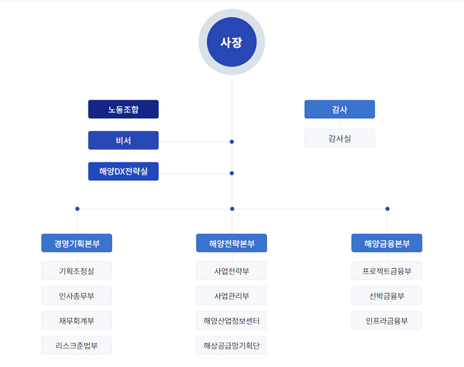 사업운영본부는 해양금융본부로 간판을 바꿔 달았다. 산하 조직 명칭도 프로젝트금융부(옛 해양금융1부) 선박금융부(옛 해양금융2부) 인프라금융부(옛 해양인프라금융부)로 변경됐다.