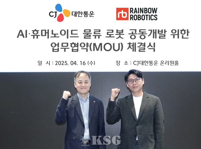 CJ대한통운은 로봇 플랫폼 전문기업 레인보우로보틱스와 물류용 AI 휴머노이드 로봇 공동 개발·상용화를 위한 업무협약(MOU)을 체결했다고 17일 밝혔다. 협약식은 전날 서울 종로구 CJ대한통운 본사에서 열렸으며, CJ대한통운 김정희 TES물류기술연구소장(