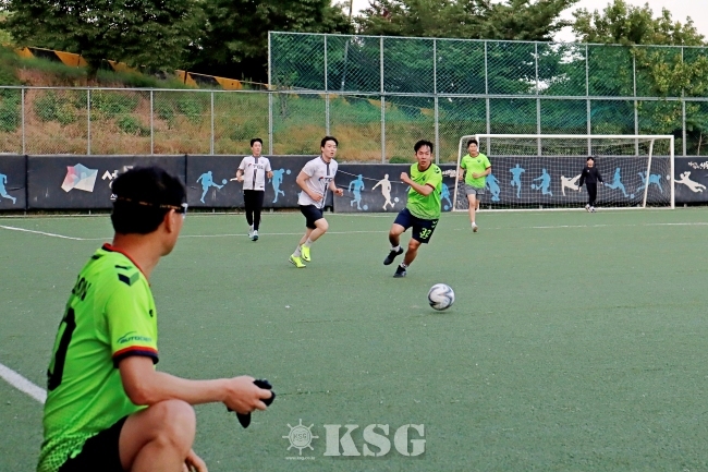 해운물류인 축구 리그는 지난 4월9일 막을 올렸다. 이제 시작한 지 두 달이 지나 4라운드, 4게임 째에 돌입했다. 6개 팀이 돌아가면서 경기를 진행하는 풀리그 방식으로 운영되며, 정규 리그는 한 경기당 30분씩 3쿼터로 진행된다.