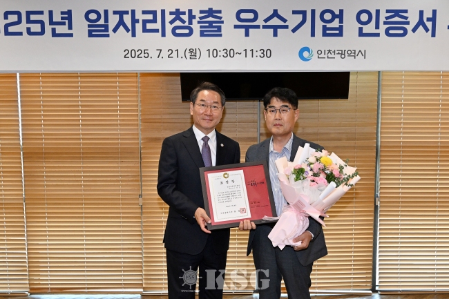 ‘일자리창출 우수기업’ 인증제는 인천시가 2013년부터 추진해온 제도로, 최근 1년간 근로자 수가 5% 이상 증가하고 고용 안정성과 사회적 책임 이행 실적이 우수한 기업을 선정한다.