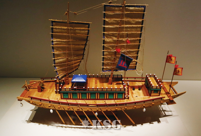 | ▲상설전시관에 전시된 조선시대 판옥선 모형 |