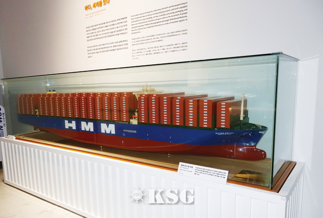 | ▲상설전시관에 전시된 HMM 컨테이너선 모형 |