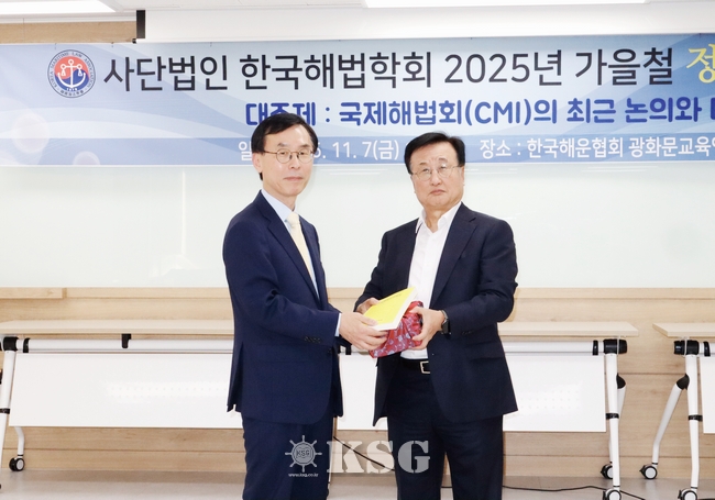 위사진 가운데) 고려대 법학전문대학원 명예교수가 한국해법학회가 수여하는 학술대상인 해인상을 받았다. 해법학회는 지난 7일 오후 한국해운협회 광화문 교육연구센터에서 열린 가을철 학술발표회에서 김 교수에게 제5회 학술대상을 시상했다.