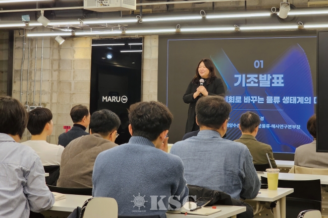 | ▲한국해양수산개발원 이언경 본부장이 기조발표를 진행하고 있다. |