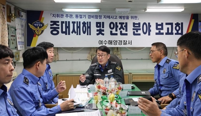 여수해양경찰서는 지난 11일 여수 신북항 해양경찰전용부두에서 경비함정 즉응태세를 점검하고, 경비함정 지휘관과 해양사고 대응과 함정 안전관리 대책 보고회를 열었다.