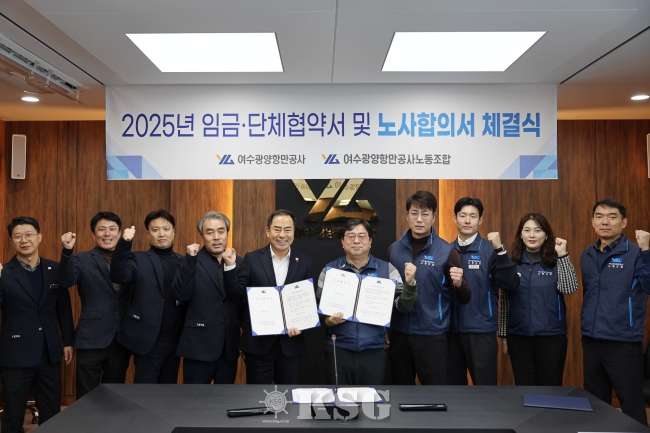 여수광양항만공사(YGPA)와 여수광양항만공사 노동조합은 24일 임금·단체협약서 및 노사합의서를 체결했다. 수차례의 실무교섭과 본교섭을 거쳐 협의한 결과 15년 연속 무분규로 협약을 마무리했다.