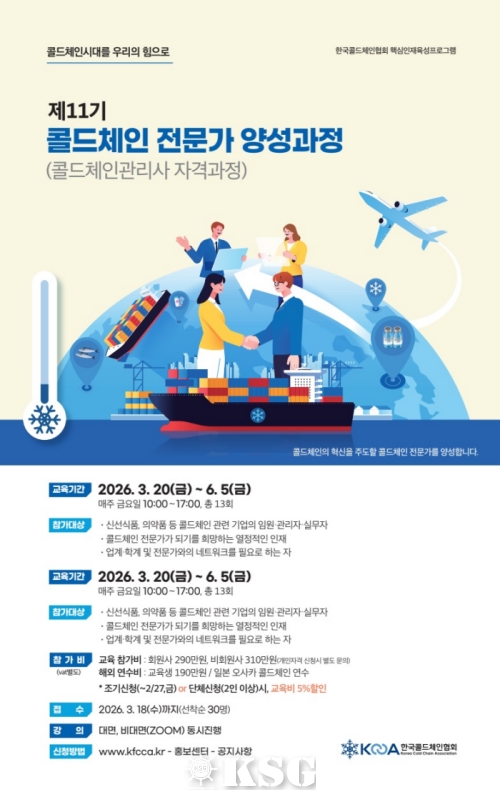 한국콜드체인협회는 제11기 콜드체인 전문가(콜드체인관리사) 양성과정 교육 참가자를 오는 3월18일까지 모집한다고 밝혔다.