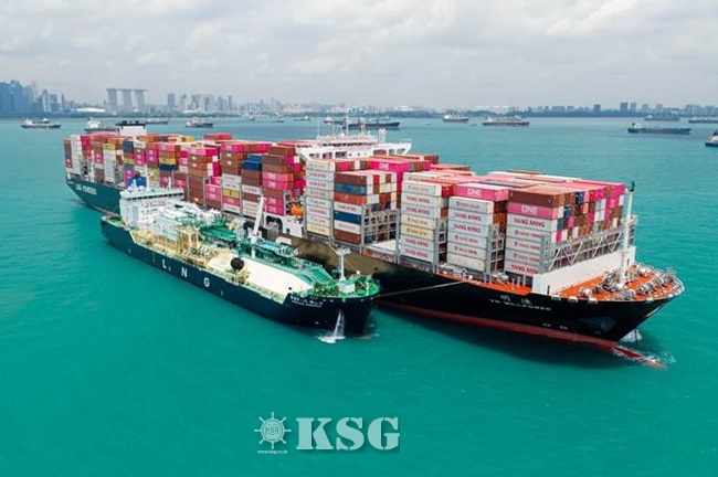 On February 26, through close collaboration with the Maritime and Port Authority of Singapore (MPA) and energy supplier Shell Eastern Trading (Pte) Ltd. (Shell), YM Willpower successfully bunkered around 3,500 metric tons of LNG in Singapore. The LNG supplied will serve as the vessel’s primary fuel for the entire voyage. This milestone signifies Yang Ming’s concrete progress in low-carbon transformation and the provision of emission-reduction solutions to customers, further demonstrating the Company’s firm commitment toward the gradual realization of net-zero emissions.