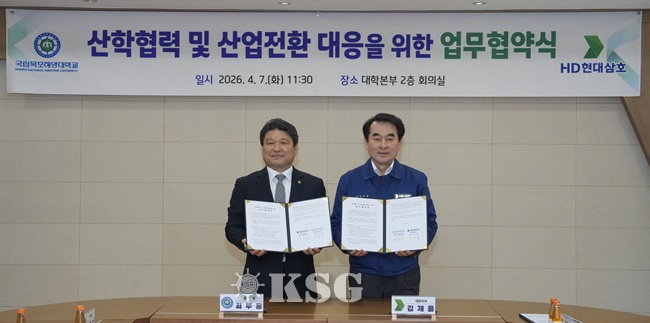 HD현대삼호는 지난 7일 국립목포해양대학교 대학본부에서 김재을 사장과 최부홍 총장을 비롯한 양 기관 관계자 20여 명이 참석한 가운데 ‘산학협력 및 산업전환 대응을 위한 업무협약’을 체결했다고 밝혔다.