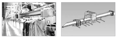 Automatic Hanger Sorter System은 물류센터에서 건물 천정의 공간에 Over Head 형태의 Endless Wire Conveyor(OHC)를 설치하고 Wire 상에는 Hanger가 자동으 로 Clamping 될 수 있도록 하는 Hook을 일정한 간격으로 조립한 후 Wire Conveyor를 구동 시키면 Hanger 형태의 상의. 하의 등 의류 제품들이 이미 전산 상에 등록 되어 있는 목적지 별로 자동 분류 하는 Sorting System입니다.