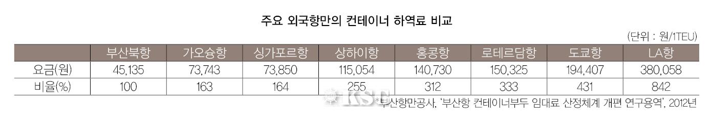 이어 그는 “10년전엔 오히려 하역료가 두 배 정도 높았는데 시간이 지난 뒤에도 더 낮은 건 앞뒤가 맞지 않다”고 토로했다. 막대한 자금을 투입해 항만시설을 개발했음에도 불구하고 중국 등 다른 국가보다 더 싼 하역료를 받는 건 이치에 맞지 않다는 것. 실제로 중국 가오슝항과 싱가포르항은 부산 북항보다 두배 가까이 많은 7만원대의 하역료를 기록하고 있다.
