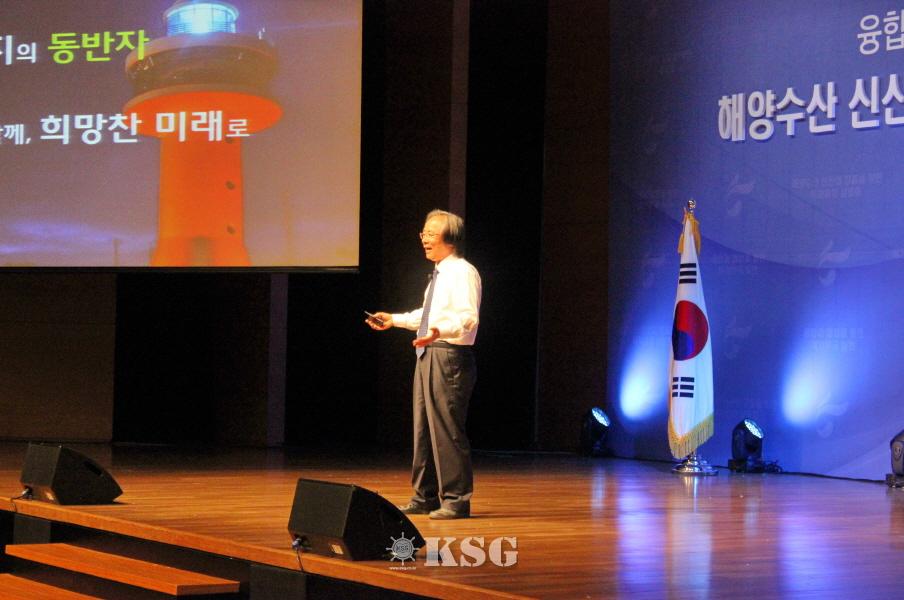 기조강연을 통해 이주영 장관은 조선해양플랜트(세계 1위), 선박보유량(5위), 컨테이너물동량(5위), 수산물생산량(13위), 수산양식(7위)의 성적표를 보면 뿌듯하겠지만 소수 전통산업의 비중이 80%로 산업구조적 편중이 심한 편이어서 주력산업 침체시 산업전반의 성장세 둔화로 이어진다고 지적했다. 오히려 낙후된 분야에서 비즈니스 기회를 만들어야 한다고 주장한 이 장관은 ‘원탁의 기사’에 나오는 거웨인의 예를 들었다. 거웨인은 아서왕을 위해 흉측하게 생긴 마녀와 결혼했지만, 그녀를 진심으로 사랑해 마법을 풀고 아름다운 여인으로 탈바꿈하게 했다.