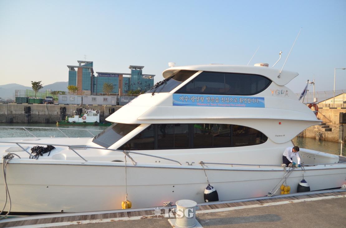 기자는 ‘광양항국제포럼’ 둘째 날인 7일 여수광양항만공사(YGPA)의 항만관리 안내선 < 월드마린 >호에 승선해 광양만에 위치한 시설들을 해상에서 관람할 수 있었다. 2012년 YGPA가 자체 도입한 < 월드마린 >호는 여수광양항의 항만시설 유지관리와 2012여수세계박람회 주요 방문객들의 항만안내와 홍보를 위해 도입됐다. 35t 규모인 이 선박은 길이 17.95m, 너비 5.65m에 최고속력 33노트를 낼 수 있으며 최대 승선인원은 30명이다. 이순신대교와 함께 지역을 대표하는 마스코트로 급부상 중인 < 월드마린 >호의 엔진이 굉음을 내지르자 가을 햇살 머금은 물결이 포말을 일으켰다.